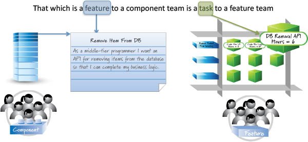 Figure 4. That which is a feature to a component team is a task to a feature team.
